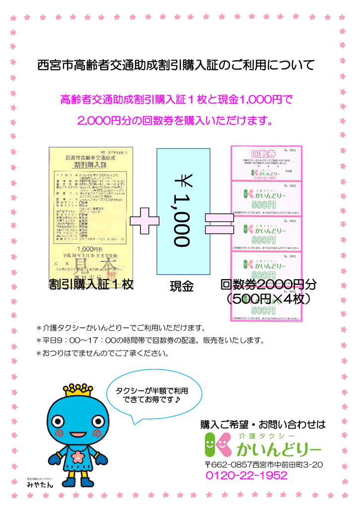 西宮市、尼崎市、芦屋市、宝塚市で介護タクシーをお探しなら【介護タクシーかいんどりー】